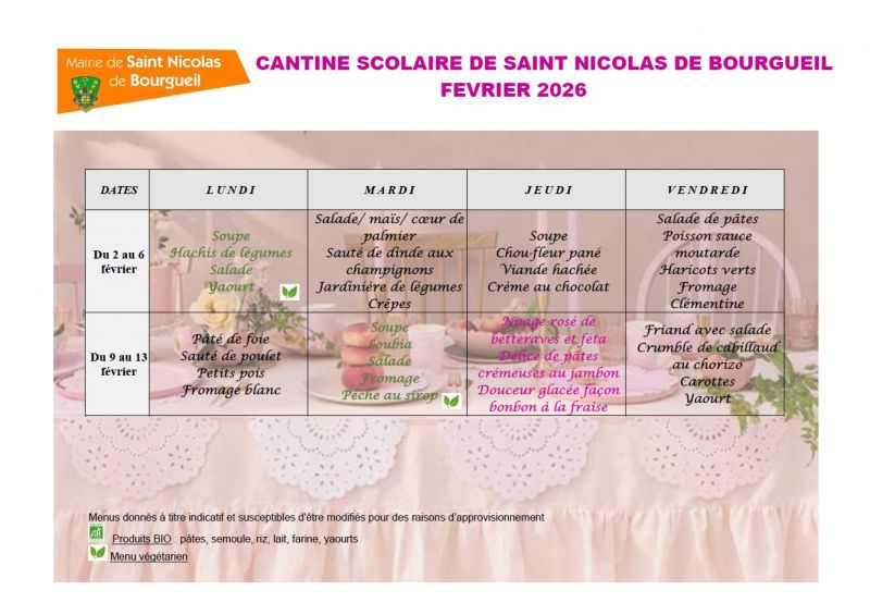Menu février - restaurant scolaire